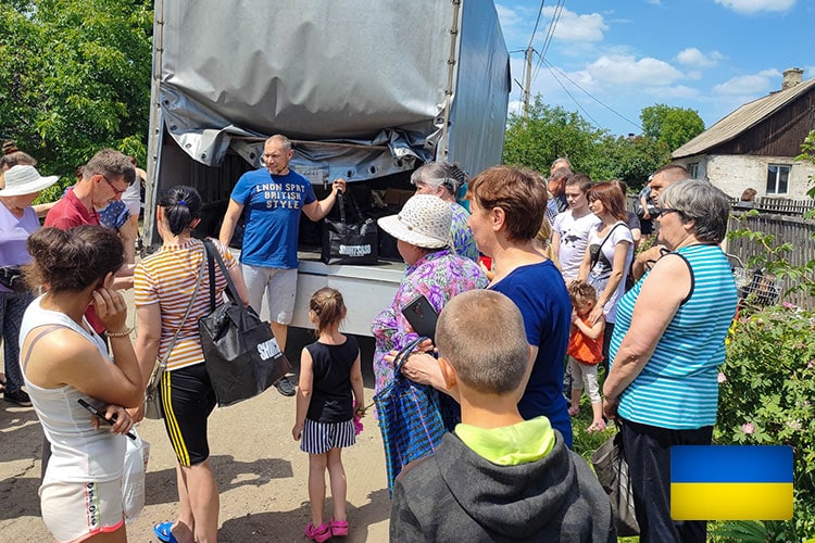 Trotz der schlimmen Lage gehen einige Missionare weiterhin in Dörfer nahe der Front, um den Menschen zu helfen! Anatolij schreibt ...